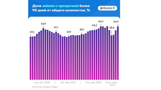 Доля займов с просрочкой более 90 дней от общего количества, %
