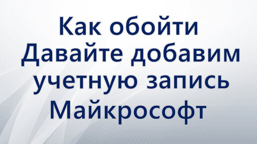 Как пропустить «Давайте добавим вашу учетную запись Майкрософт»