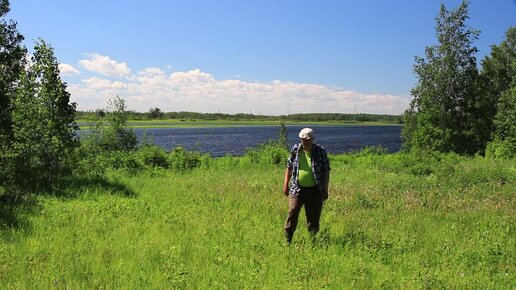 На зеленой полянке у берега протоки..