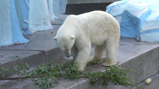 Каю сбросили ветку и он перекусил листиками. 22.08.2023