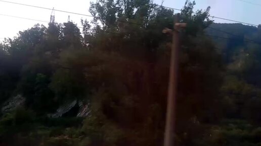 Вид на горы из окна поезда. Путешествуем в поезде на море.