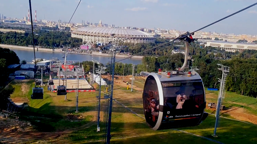 Канатная дорога через Москву-реку. На фуникулере с Воробьевых гор в Лужники.