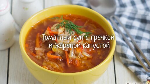 Густой суп с гармоничным и сбалансированным вкусом. Томатный суп с гречкой и жареной капустой.