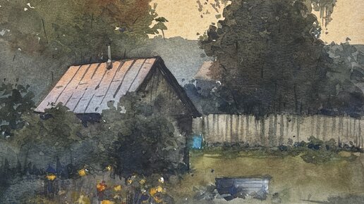 Акварельный пейзаж «Закат» Туториал, природа, пейзаж, закат.