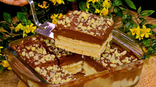 Проще УЖЕ НЕКУДА!!! А какой ВКУС! Влажный ТОРТ с орехами и шоколадом! Божественно вкусный десерт без выпечки!