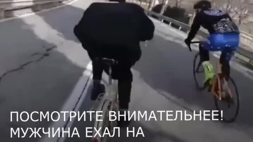 Посмотрите внимательнее! Мужчина ехал на подростковом велосипеде, когда появилась команда профессиональных велосипедистов.