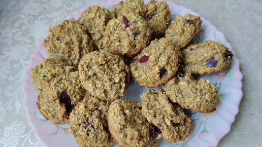 Без сахара, муки и жира. Мягкое домашнее печенье с яблоками и вишней.
