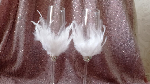 Украшение свадебных бокалов перьями, нестандартно и экстравагантно!Скоро мастер - класс на канале.