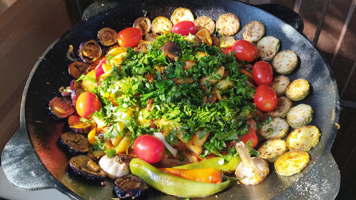 Ужин на садже. Жарим мясо с грибами и овощами.