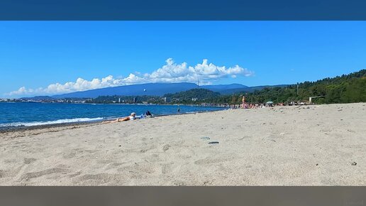 Пляж Мокко, откуда открывается прекрасный вид на столицу Абхазии город Сухум, видны маяк и восхитительный горный ландшафт