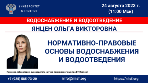 ВИДЕО. Янцен О.В. Нормативно-правовые основы водоснабжения и водоотведения