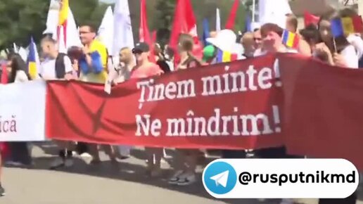 "Ура!" - кричат участники марша-митинга в Кишиневе в честь годовщины освобождения молдавской земли от фашистских захватчиков