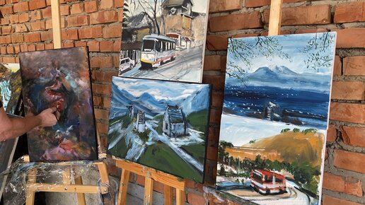 2-этап, Пишем 4 картины, достопримечательности Пятигорска, КМВ,КБР и 1-этап абстракцию маслом на холсте. Зилавди Яшуркаев.