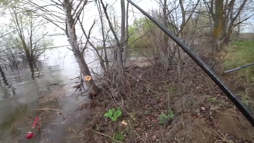 Закинул поплавок в затопленные деревья и пошла жара. Рыбалка