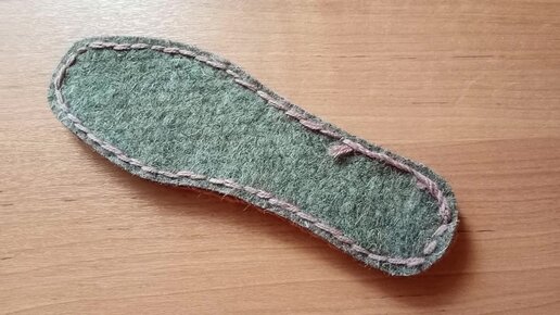 Пришивание вязаной стельки к войлочной. Продолжение вязания тапок в следующих видео.