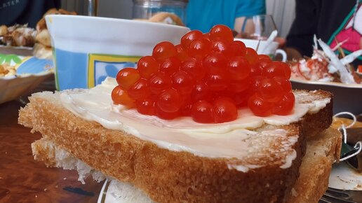 Завтрак на Курилах: краб, рыба и икра..