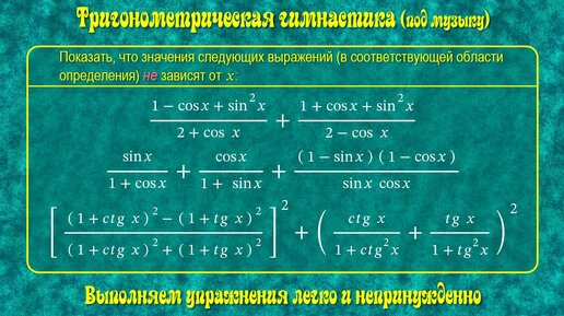 Тригонометрическая гимнастика (под музыку). Выполняем упражнения легко и непринужденно.