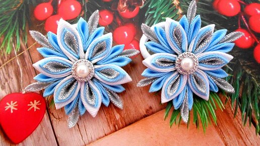 НОВОГОДНЯЯ СНЕЖИНКА из лент КАНЗАШИ