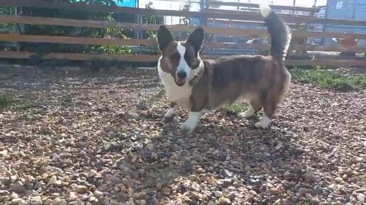 Взрослая вельш-корги Эля вспомнила щенячьи игры