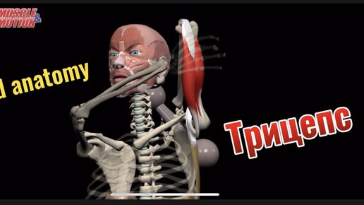 Трицепс - трехглавая мышца плеча. 3d anatomy MUSCLE MOTION.