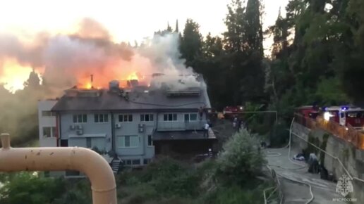 В Сочи сгорел дом, эвакуировано 60 человек: видео тушения пожара