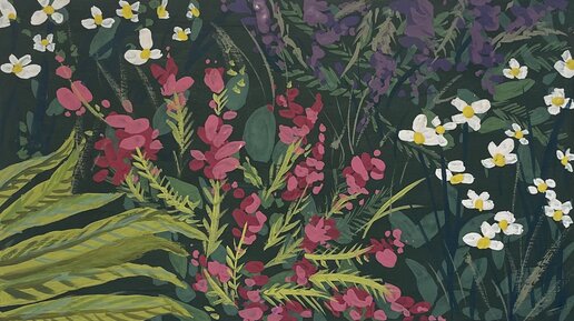 Поле цветов. Рисунок гуашью для взрослых и детей