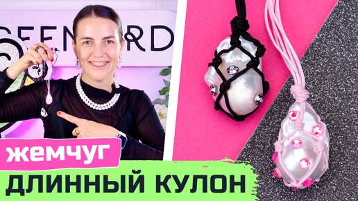 Крупный кулон на длинном шнуре - подвеска с жемчугом в стиле макраме