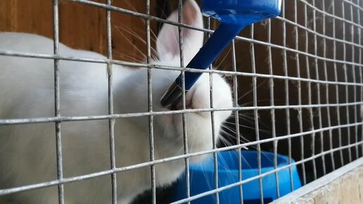 Ми-ми-ми ! Кролик пьёт из шариковой поилки.