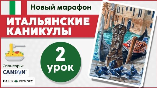 Итальянские каникулы с Dari Art! Рисуем акварельный скетч с Венецией и голубями урок 2.