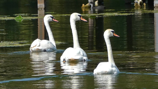 Белые лебеди - прогулка по утреннему парку! Гатчинские лебеди.