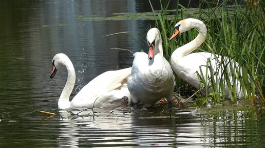 Белые лебеди чистят перышки! Самые красивые птицы! Гатчинские лебеди.