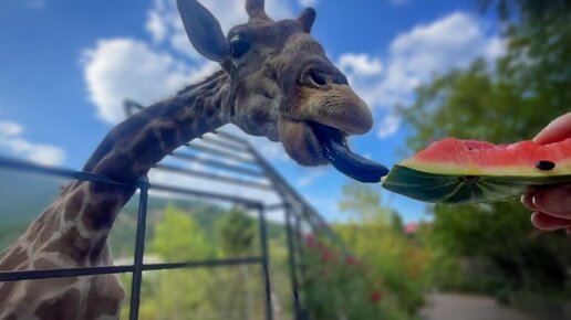 Чтоб угостить жирафа арбузом пришлось постоять в очереди!