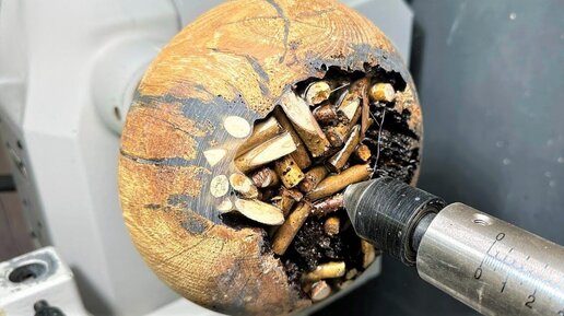 Делаю стеклянною пепельницу из гнилого бревна с добавлением битого стекла, веток и смолы.