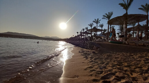 Встречаем волшебный закат на Красном море в Египте. Песчаный пляж отеля Seti Sharm 4* в Шарм-эль-Шейх.