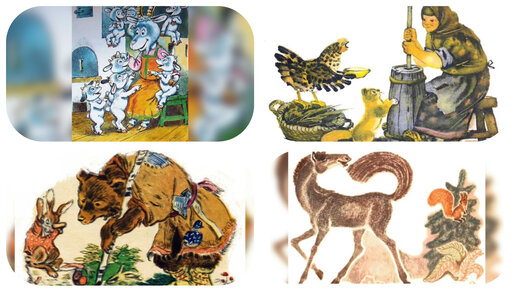 Сборник русских народных сказок. Волк и семеро козлят, Заюшкина избушка, Петушок и бобовое зернышко, Хвосты. Аудиокнига с картинками детям.