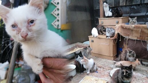 90 котиков осиротели. Сын хозяйки выгнал их из дома, после того, как женщины не стало