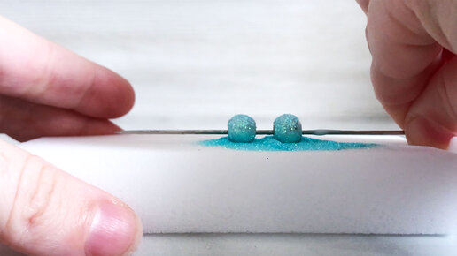 Додумалась 2 бусины и отрезок ненужной нити покрыть блестками. В память о лете получился необычный декор для школы (3 в одном)