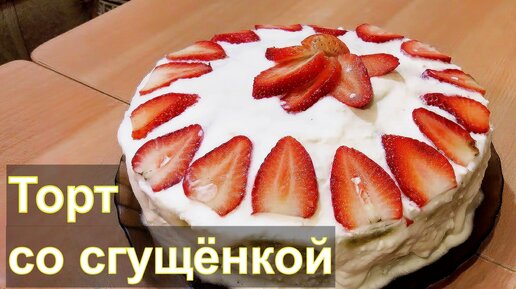 Торт на сгущённое молоке - нежный торт с начинкой из клубники со сметанным кремом и бисквитом