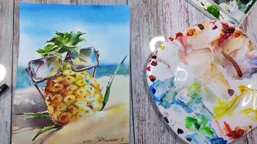 Ананас в акварели. Так легко мне ещё не было.
