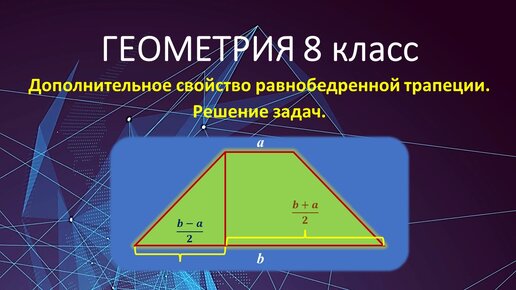 Геометрия 8 класс. Дополнительное свойство равнобедренной трапеции. Решение задач.