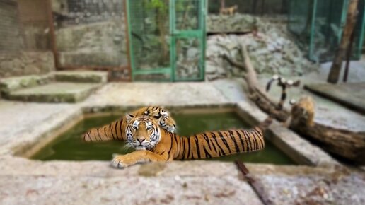 Вы НИГДЕ НЕ УВИДИТЕ , как тигр с тигрицей прячутся в бассейне от своих детенышей!