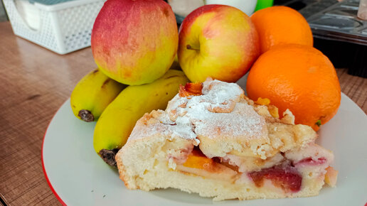 Фруктовый пирог "Август" с яблоками, персиками, сливами. Рассыпчатое тесто. Пеку по-русски в Турции.