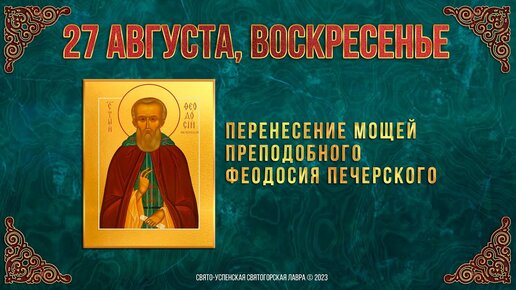 Неделя 12-я по Пятидесятнице. Перенесение мощей прп. Феодосия Печерского. 27.08.2023 г. Календарь