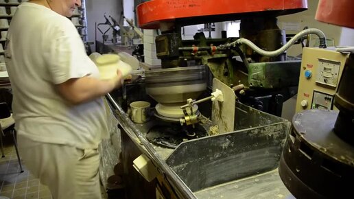 Ручное производство Чешского фарфора. Изготовление меньших тарелок на полуавтомате.