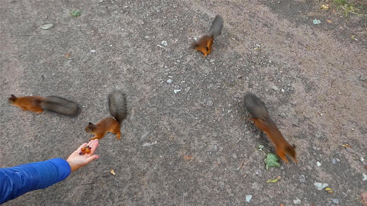 Стайка веселых пугливых бельчат! А вот синички смелые птички! Елагин остров.
