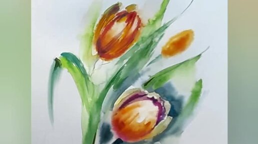 Этюд. Акварель. Е.Сизова #акварель #тюльпаны #живопись #изо