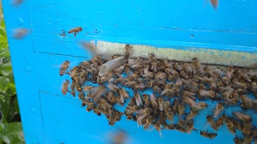 Вот так происходит воровство, нападение чужих пчёл на улей, ух что твориться.