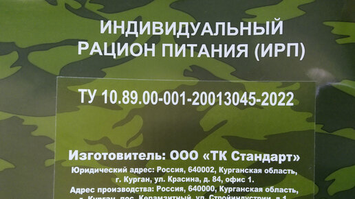 Индивидуальный рацион питания стандарт ИРП, что внутри, приготовление.