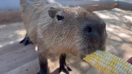 Капибара распробовала кукурузу!
