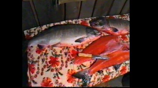 Кета посол, для копчения, остров Итуруп, 1995 г. (из старых оцифрованных видео)